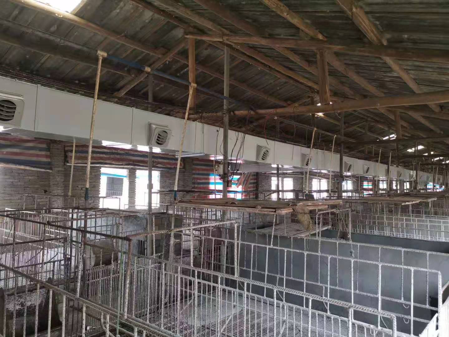 為減少高溫對豬群的影響,利用降溫環??照{(冷風機)對豬舍進行換氣降溫。在產房母豬與仔豬的適宜溫度相差較遠,出生仔豬的適宜溫度為30-32℃,母豬的適宜溫度為22-24℃。因此,產房與哺乳仔豬的降溫就要區別開來:降溫通風既要兼顧母豬又要考慮仔豬不著涼。現在養殖行業大量使用的環??照{濕簾冷風機已妥善解決以上問題:
